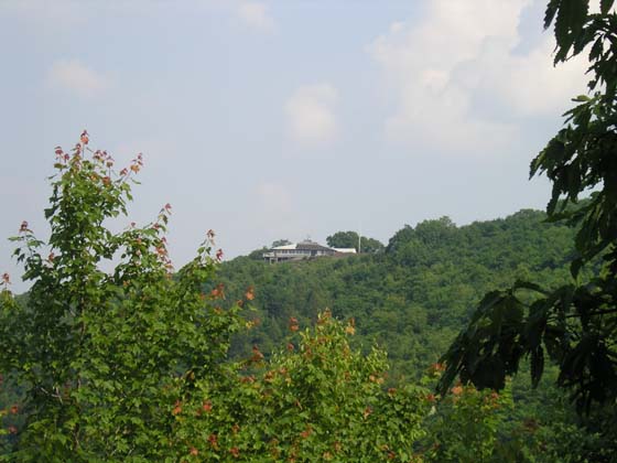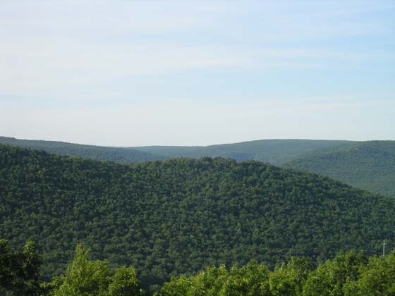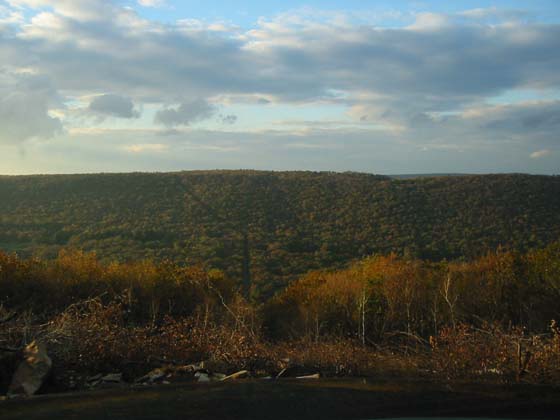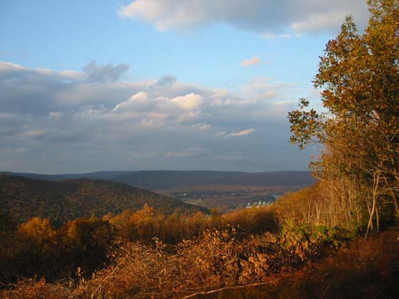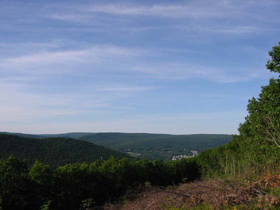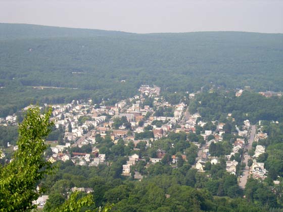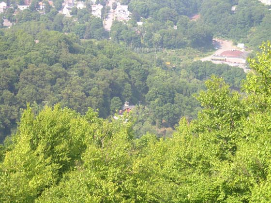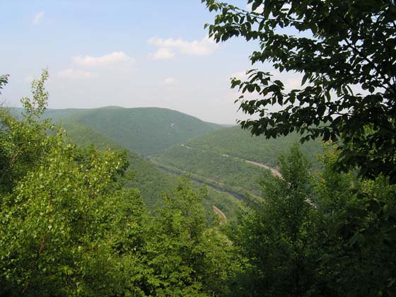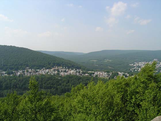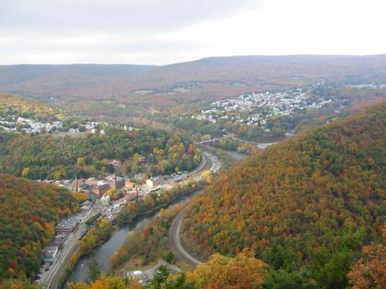 An overlook of the road coming in from Lehighton, the Lehigh River, and the Rail Road tracks