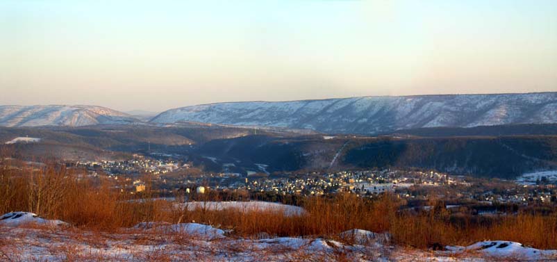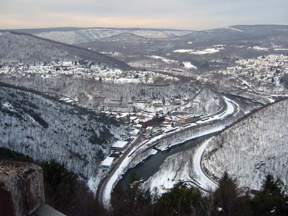 Winter - A dramatic view overlooking the town of Jim Thorpe split by the Lehigh River